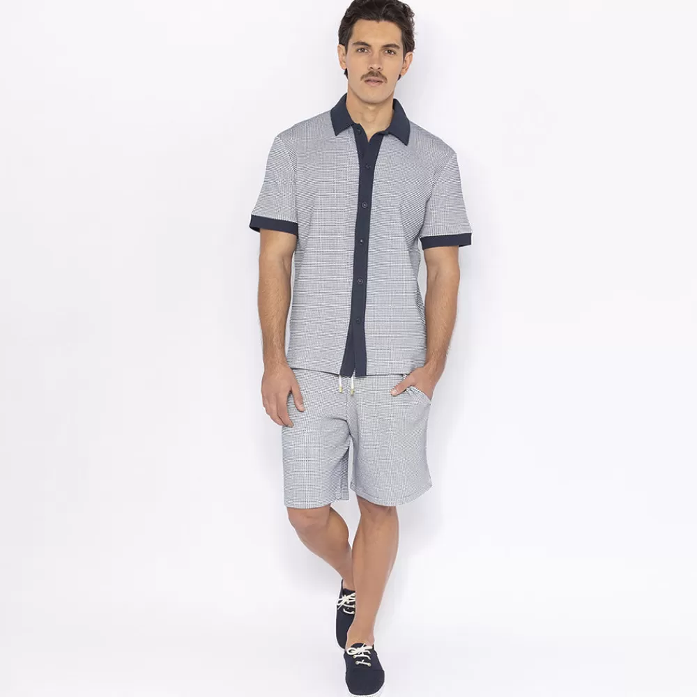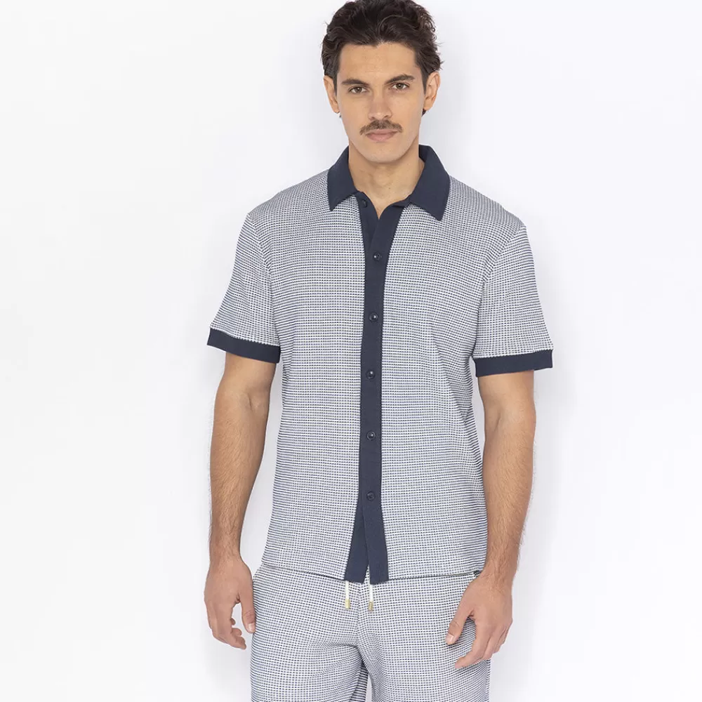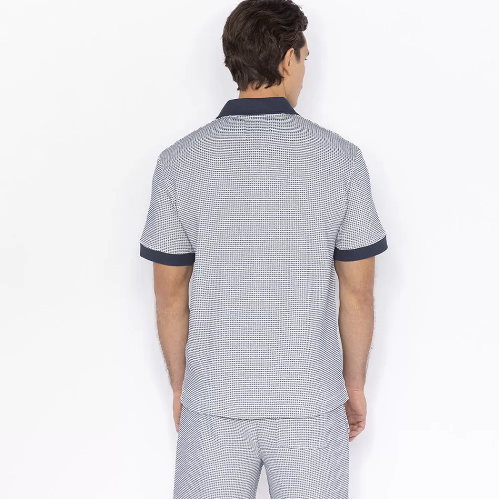 Two-tone interlock shirt with left chest pocket and navy inserts