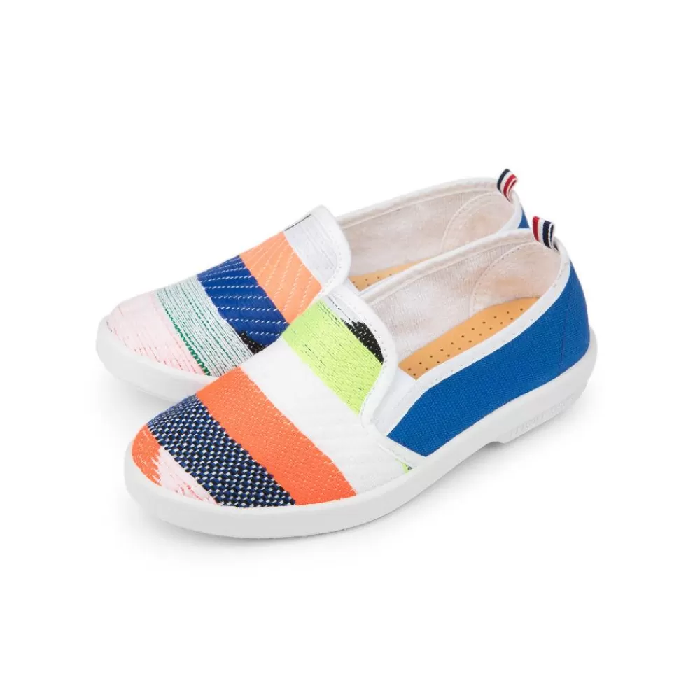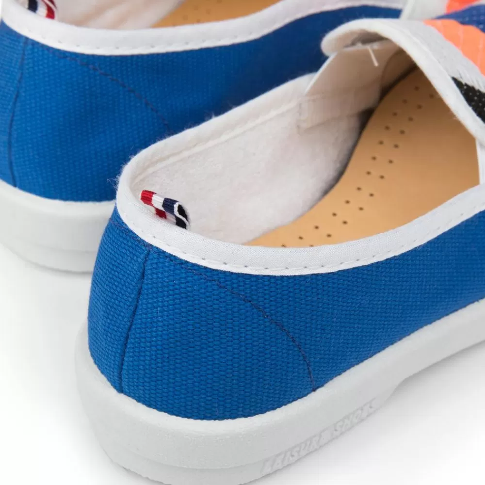 | . Cotton canvas . Blue-White-Red pull-on tab . Cotton piped . Terrycloth lined . Sheepskin inner sole . Gum outsole . Made in Spain |